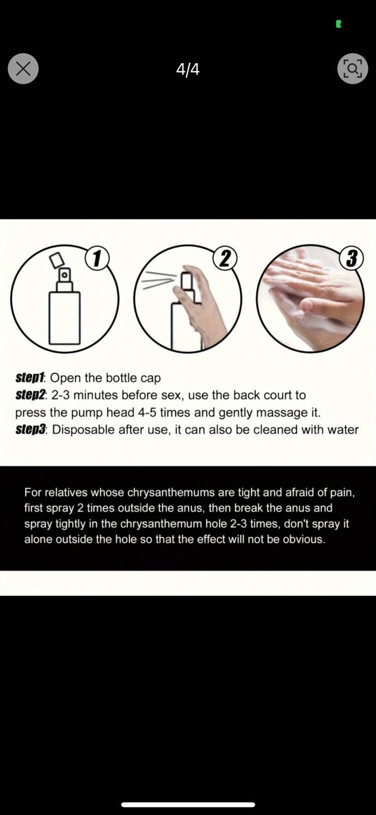 Aplicar en la zona anal y esperar de 2-3 minutos antes del coito. No contiene sustancias tóxicas. Amable con tu piel